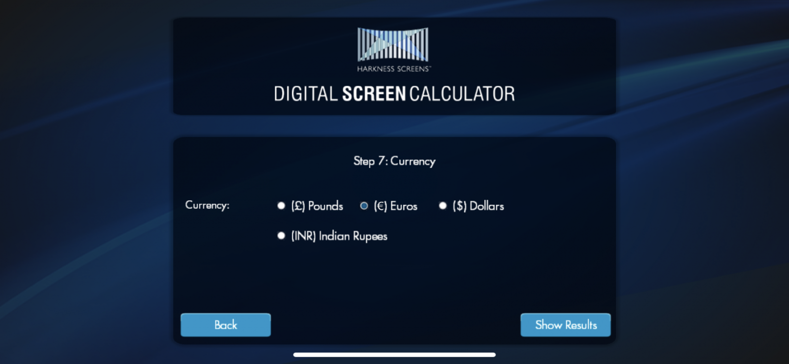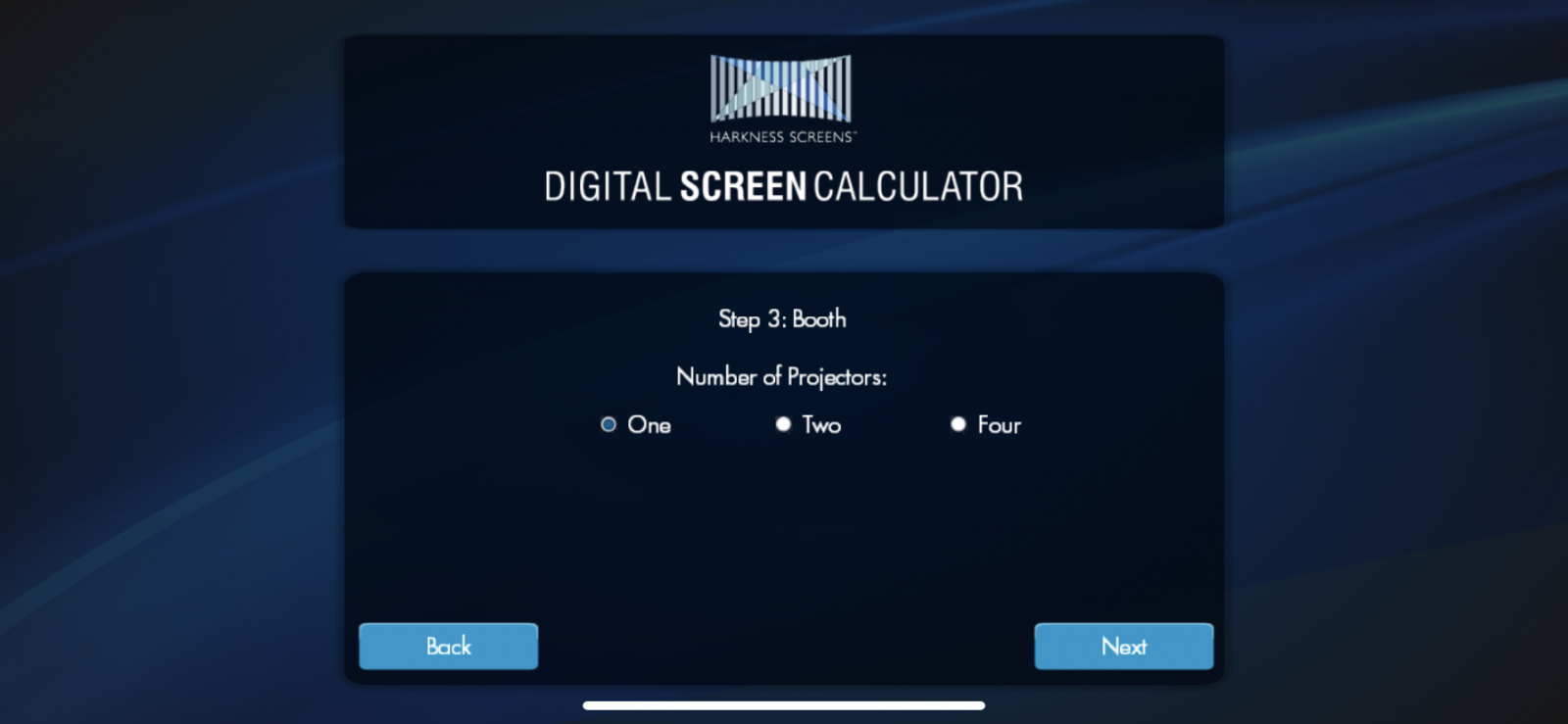 Калькулятор параметрів екрана Harkness – це утиліта, спрямована на оптимізацію кінотехніки. Інструмент швидко обчислює можливості вибору обладнання та надає рекомендації, що ґрунтуються на обраному розмірі екрана та рівнях освітлення для 2D та 3D. Він також розраховує теоретичні експлуатаційні витрати, які показують, як вибір екрана може зменшити їх.